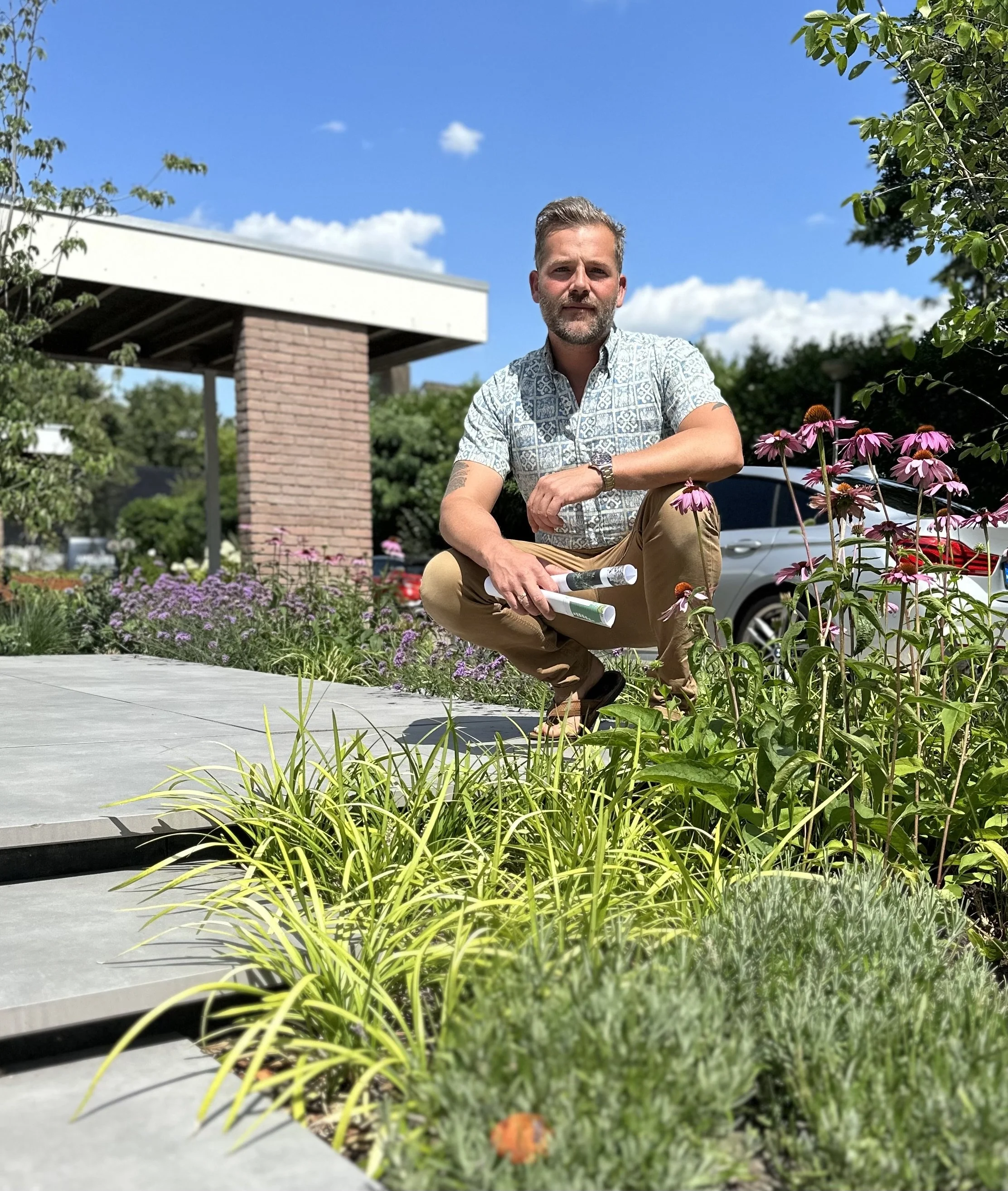 Met jarenlange ervaring in de aanlegpraktijk weet Roeland precies wat er wél en niet uitvoerbaar is. Die kennis neemt hij mee in ieder ontwerp, zodat hoveniers zonder verrassingen aan de slag kunnen.